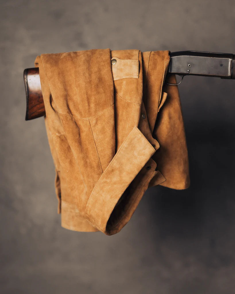 We work with a small family-owned workshop to to create the lambskin suede Western shirt. Each made by hand, one at a time. Lined, brass hardware, single stitching. Runs true-to-size. Three colors.