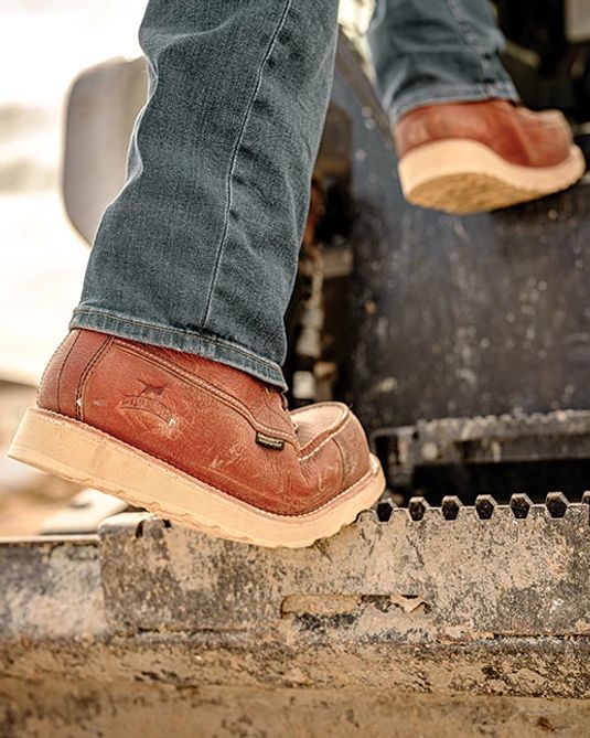 The 6-inch waterproof leather Wingshooter XD soft toe boot won't back down when your work goes to the extreme. It packs all the right reinforcements into a classic style with the iconic wedge sole and Goodyear welt construction for long-lasting durability. The leather upper can withstand the elements, while UltraDry™ waterproofing keeps you dry no matter what. Military-grade lining is fast-drying for all-day comfort. Built-in electrical hazard protection provides additional safety. The one-piece ArmaTec™ TPU toe cap protects against wear that can result from repetitive tasks. Underneath, the Traction Tred outsole delivers the ultimate in slip-resistant performance