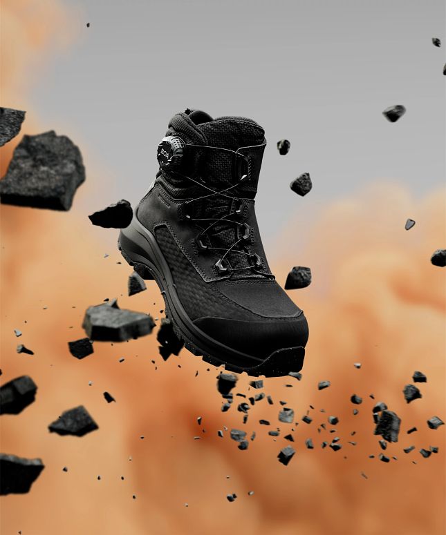These ultralight, hiker-styled work boots incorporate innovations in environmentally friendly and sustainable materials while maintaining absolute durability, comfort and performance. Materials made from renewable resources and post-consumer recycled plastic are used throughout — everywhere from the outsole, midsole and bootie to the footbed and even the laces. ASTM-approved electrical hazard and aluminum safety toe protection combine with Red Wing waterproofing to make Apex boots ideal for work in construction, transportation, warehousing and other medium-duty trades, indoors and outdoors. Underneath, the Vibram® Eco outsole delivers best-in-class slip resistance. You can also dial in a fast, effortless, precision fit with the BOA® Fit System