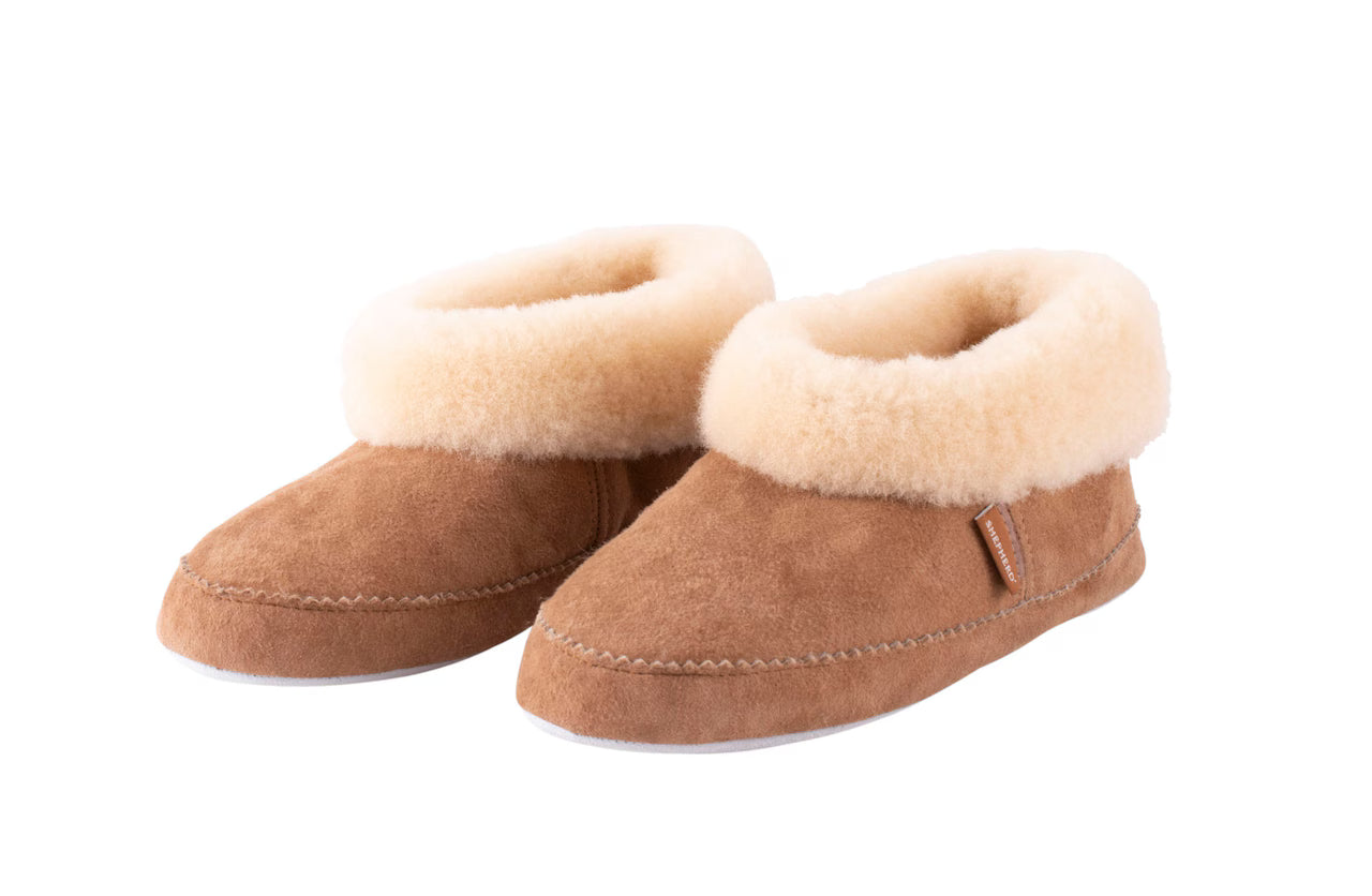 The flexible suede sole gives a natural connection to the floor, enhancing the cozy feeling of home. Thanks to the natural properties of genuine sheepskin, warmth is evenly distributed without ever feeling stifling. Emmy is the perfect companion for long breakfasts, sofa evenings, or simply those cherished moments of me-time.
